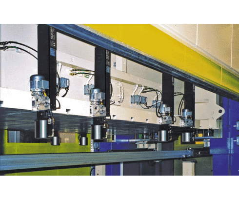 Rapid clamping systems are used for the automatic clamping of dies of varying sizes on the press ram.