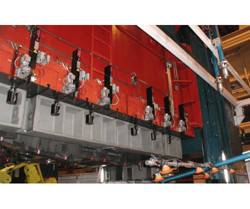 The electro-mechanical driven push chain moves the clamping element attached to the Flexline-R rapid-clamping system automatically from the