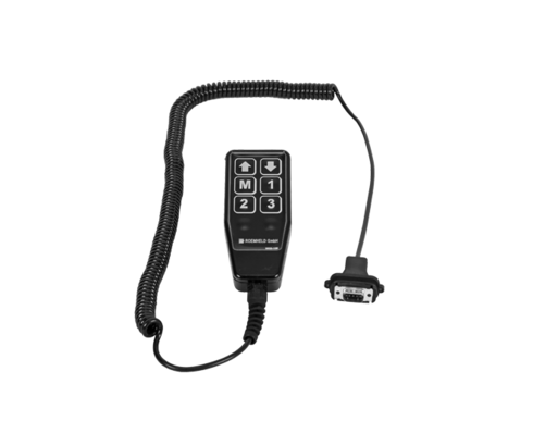 The hand panel with memory function has two push-buttons "up" and "down" to adjust the lifting modules and 5 programmable buttons for the memory function.