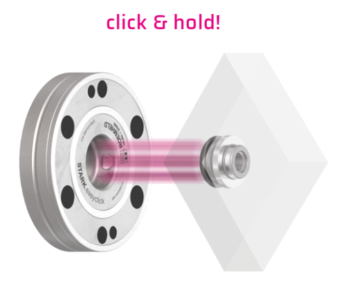 El STARK.easyclick es un cierre rápido mecánico que encaja y se sujeta inmediatamente sin suministro de energía.