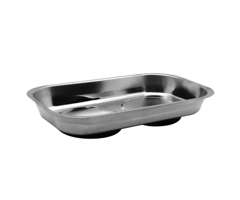 Made of stainless steel, with two heavy-duty magnets and protective rubber on the bottom.