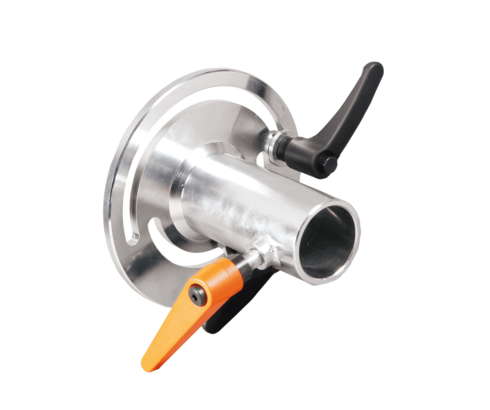 High torques can occur with the Bike pro Stand with rotation axis. To absorb these torques, the universal fixture part no. 6352 919 must be screwed to the flange of the rotation axis, to which suitable clamping claws and holders in 3 variants can be attached.